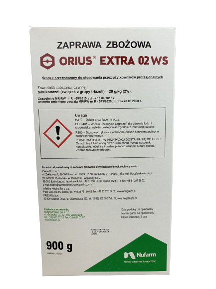 Zaprawa Zbożowa Orius Extra 02 WS jest środkiem grzybobójczym w formie proszku do sporządzania zawiesiny wodnej o działaniu układowym do zaprawiania w zaprawiarkach przystosowanych do zapraw ciekłych i zawiesinowych ziarna siewnego pszenicy ozimej i jarej oraz jęczmienia ozimego i jarego przed chorobami grzybowymi.